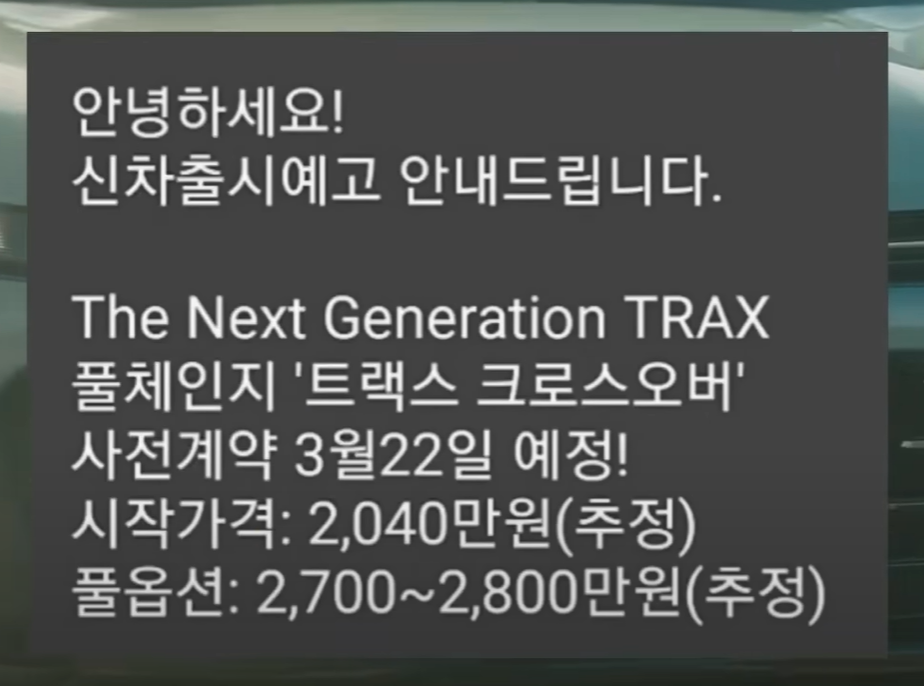 쉐보레에서 트랙스 2024 풀체인지 모델을 선보였다.